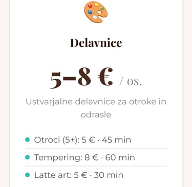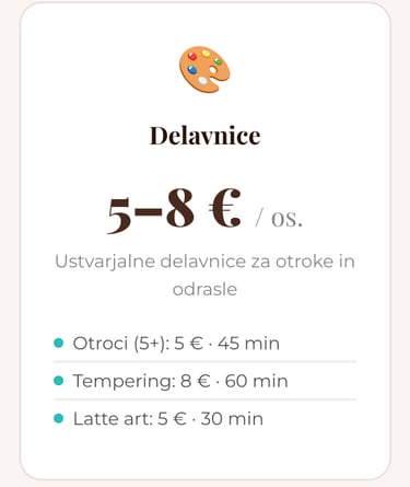 Ustvarjalne delavnice za vse starosti, od temperiranja čokolade do latte art-a.